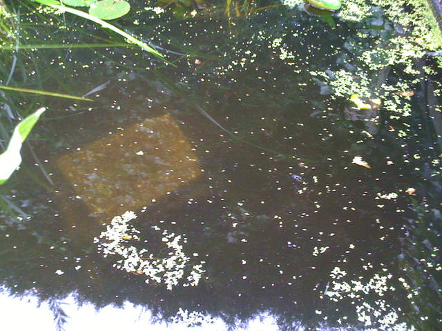 Foto1: Na 2 weken was het water even zo helder dat je de bodem kon zien. Dat ding is een steen op de bodem.
