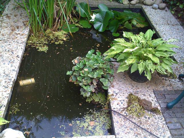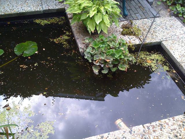 Inderdaad is het water geen bronwater geworden maar ben er toch wel tevreden mee. De vijver is niet meer groen geworden, het water heeft nu een zwarte kleur. Op zeker moment kon ik zelfs de bodem zien, dat is nu niet meer zo, maar de algen zijn wel weg.