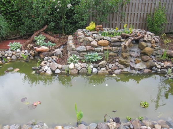 In mijn L-vormige vijver ( 10m3/10m2, z ie bijlagefoto) heb ik de pomp, welke mijn hoger gesitueerde moersfilter bevoorraadt, in het diepste deel