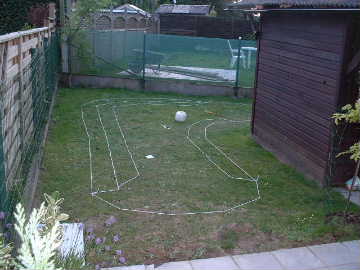 Dit zou hem dan moeten worden. Een L-vormige siervijver met volgende afmetingen. 1.60 m br op 5.5 m lang en achteraan 1.60 m breed op 3.60 m lang. 2 niveau's 1st op 20 cm diep en 25 cm breed 2de op 40 cm diep en 25 cm breed beide om te vullen met de nodige planten. Diepste punt 1 m.