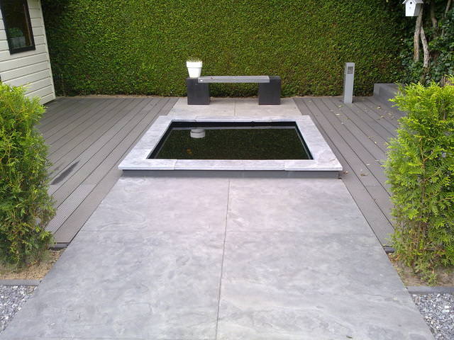 hier zitten tot nu toe 4 koikarpers en 1 steur in.