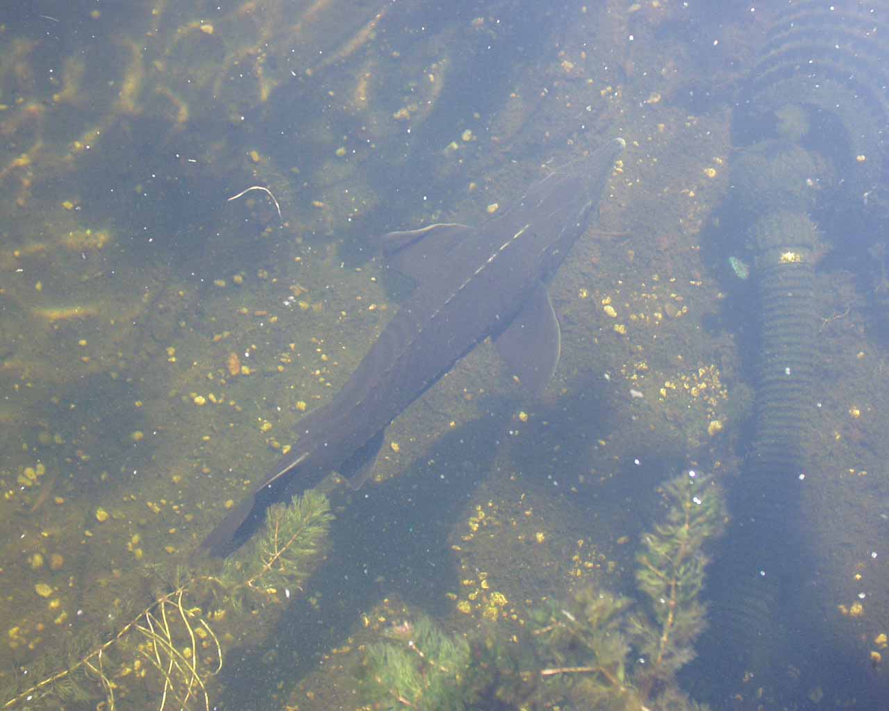 Bij deze ben ik niet zeker. De vorm van de kop doet mij erg sterk denken aan een hybriede Siberische steur (baeri) x sterlet (ruthenus). Als je dit zeker zou willen weten zou je het eens kunnen vragen aan de jongens bij spieringsvis of Vijvercentrum Overloon. Daar hebben ze de meeste steuren wel in handen en weten ze ook hoe de hybrieden te herkennen. Ik ben heel benieuwd wat hun mening is over deze vis.