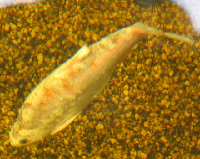 Vanochtend zag ik dat er een winde zich niet zo prettig voelde; zie foto's. De winde heeft een ravelige huid en dikke witte plekken aan de staart en vinnen. Vorige week is er een winde met dezelfde symptomen aan haar einde gekomen, toen dacht ik dat er een kat aan het hengelen was geweest.